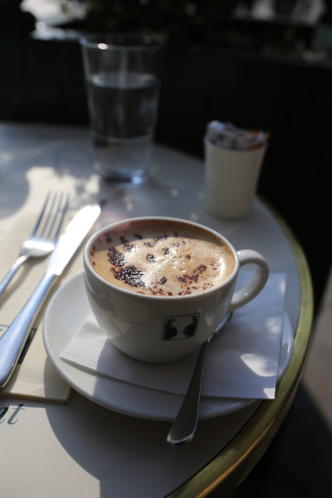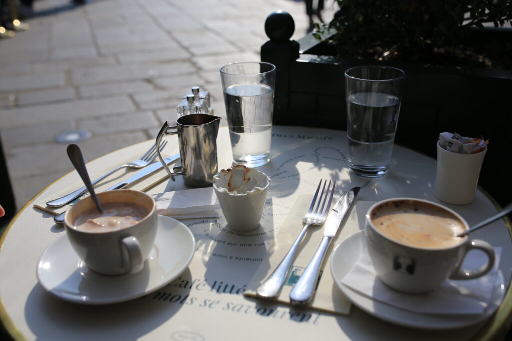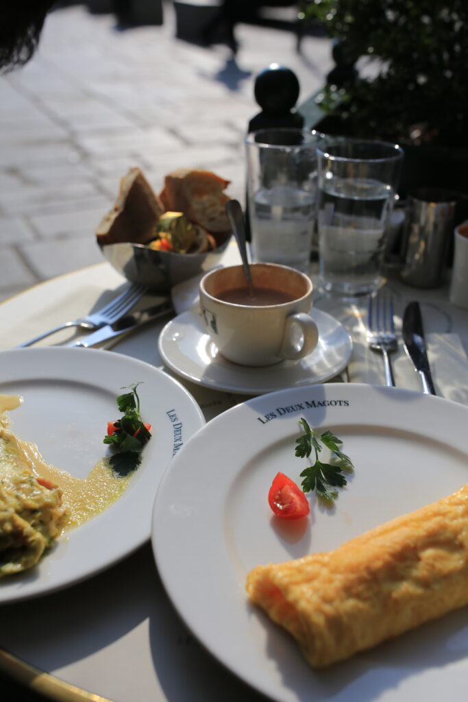 I recommend having breakfast at a café in Saint-Germain-des-Prés. Two famous, high-quality cafés sit facing the beautiful and historic Église Saint-Germain-des-Prés, a church dating back to 558. Les Deux Magots is located right on the corner of Boulevard Saint-Germain, making it an ideal spot to start your day.