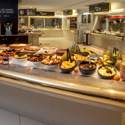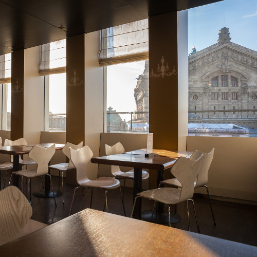 The café on the rooftop of Galeries Lafayette Haussmann offers reasonably priced meals. You can enjoy an afternoon tea there before heading to the glass-enclosed panoramic terrace, where transparent walls surround you with sweeping views of Paris’s most iconic scenery.