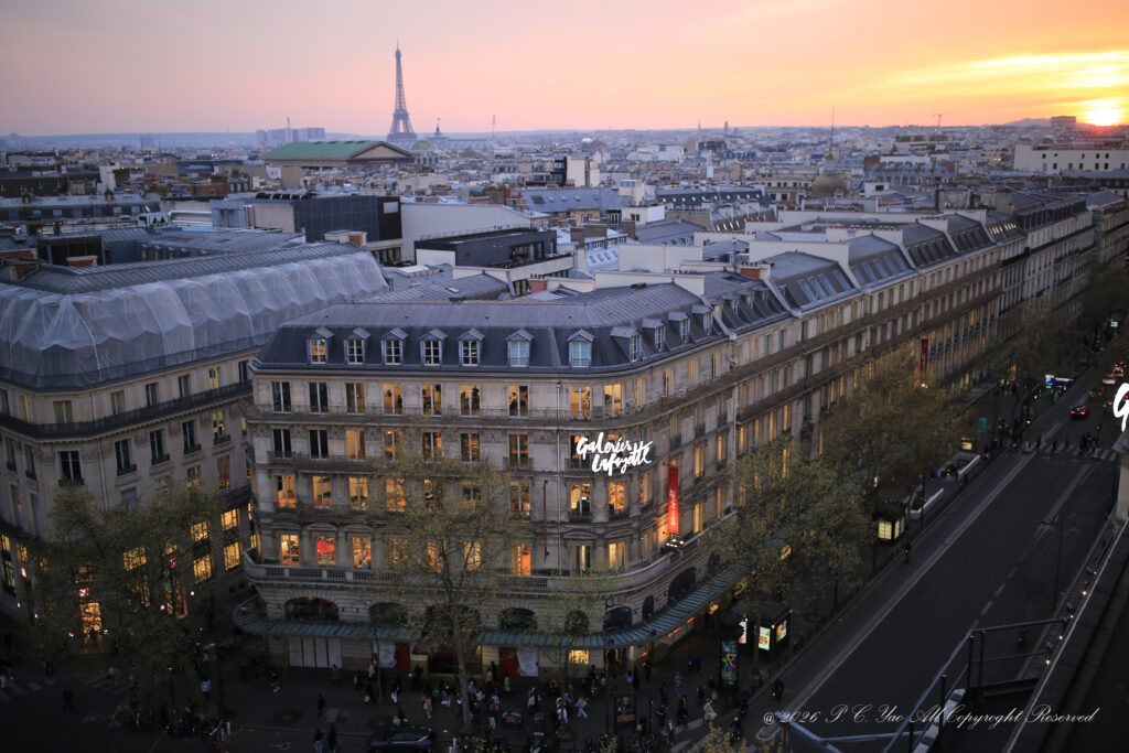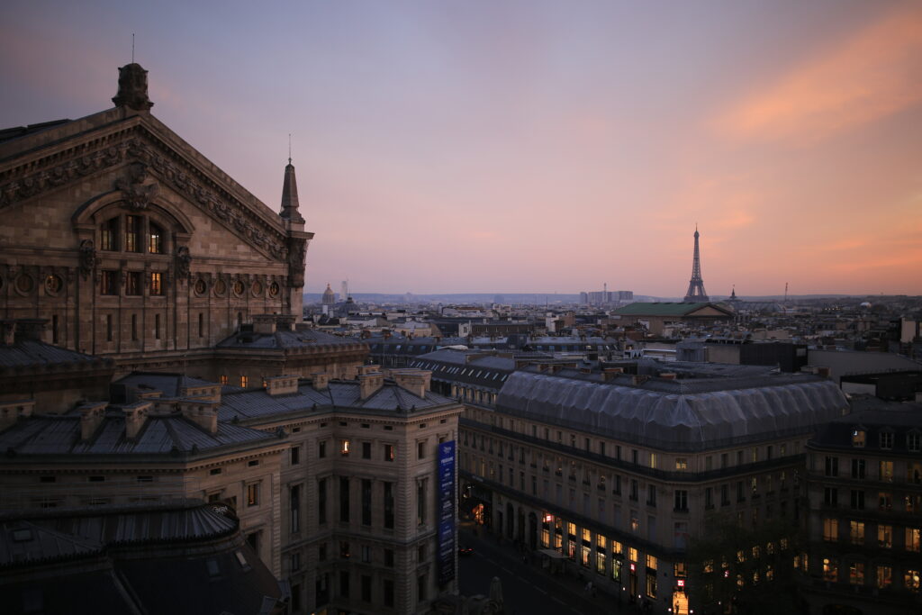 Where can you witness the breathtaking combination of the Eiffel Tower, the elegant rooftops of Parisian architecture, and a stunning sunset? Perhaps the answer is the rooftop of Galeries Lafayette Haussmann.